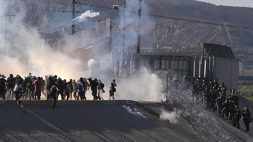 ABD polisi, Orta Amerika ülkelerinden yola çıkarak sınırdaki duvarı geçmeye çalışan göçmenlere göz yaşartıcı gazla müdahale etti.