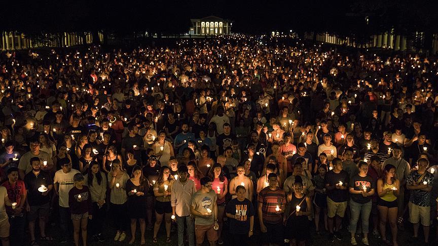 ABD'nin Charlottesville kentinde binlerce kişi hafta sonunda yaşanan şiddet olaylarını protesto etmek için ellerinde mumlar taşıyarak bir araya geldi.