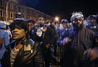Protestocular, “Siyahilerin yaşamı değerlidir”, “Baltimore’dan Washington’a özgür olana kadar mücadele vereceğiz”, “Medya kırık camlar yerine kırık kemiklerin peşine düş” sloganları attı.