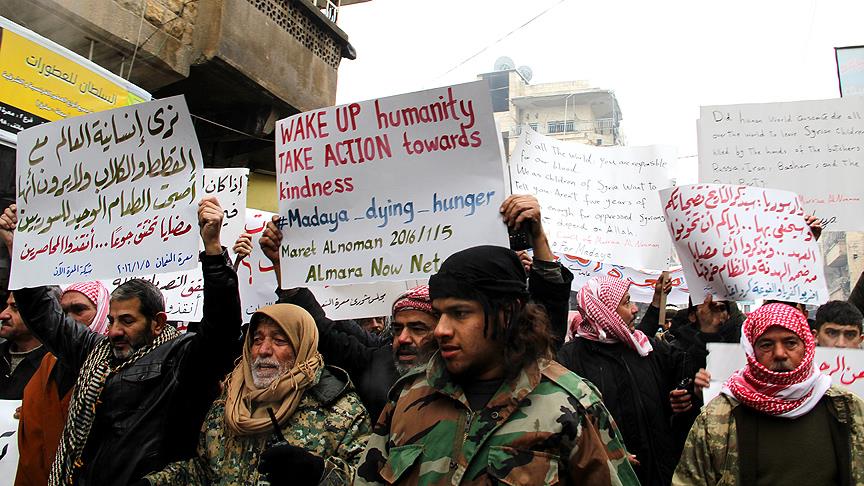 Göstericilerin taşıdıkları dövizlerde, ''İnsanlık vicdanı mı öldü?", "İran, Rusya, Hizbullah ve Esed Suriyeli çocukları öldürüyor', "Ne zamana kadar Madaya açlıktan ölecek?''' yazılı olduğu gözlemlendi.