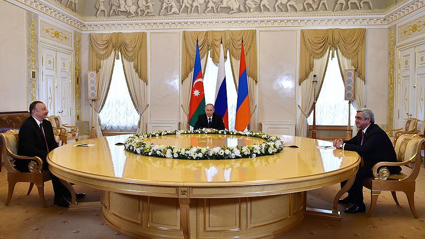 Rusya Devlet Başkanı Vladimir Putin, Azerbaycan Cumhurbaşkanı İlham Aliyev ve Ermenistan Cumhurbaşkanı Serj Sarkisyan Dağlık Karabağ sorununu görüşmek üzere St. Petersburg'da bir araya geldi.