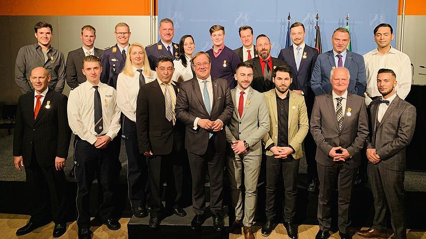 Almanya'nın Kuzey Ren Vestfalya (KRV) Eyalet Başbakanı Armin Laschet, başkalarının hayatını kurtarmak için kendi hayatlarını tehlikeye atan ve aralarında 4 Türk'ün de bulunduğu 21 kişiye "Kahramanlık Madalyası" takdim etti.