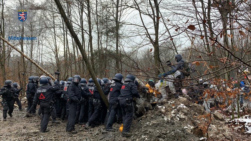 Orta Hessen Polis Teşkilatınca yapılan açıklamada, uyarıları dikkate almayan çevrecilere yönelik tazyikli su kullanıldığı, bir polis kordonunu aşmaya çalışan protestocuların güç kullanılarak püskürtüldüğü belirtildi.