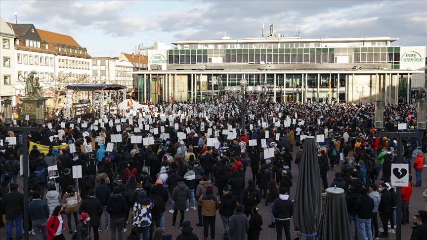 2 yıl önce saldırının düzenlendiği kafenin önünde düzenlenen anma törenine, Almanya Sosyal Demokrat Parti (SPD) Eş Genel Başkanı Saskia Esken, Hanau Belediye Başkanı Claus Caminsky ve sivil toplum kuruluşu temsilcileri ile çevre sakinleri katıldı.