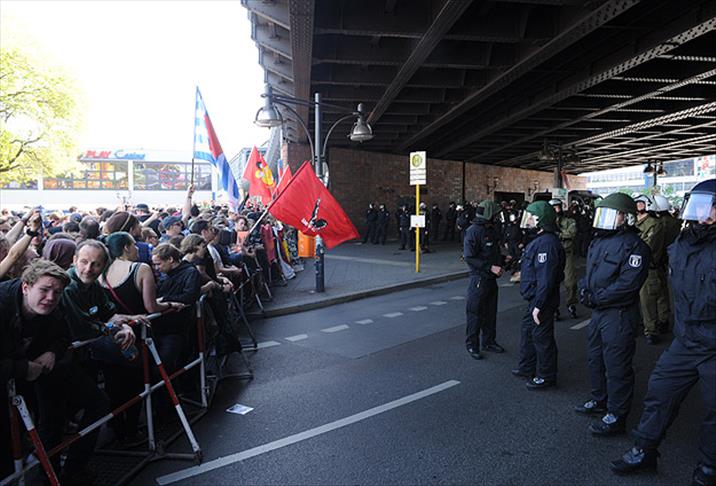 Almanya Milliyetçi Demokratik Partisi'nin (NPD) yabancı kökenlileri protesto etmek amacıyla düzenlemek istediği yürüyüş için Jannowitzbrücke mevkisinde toplanan 100 kişilik grup, Türklerin yoğun olarak yaşadığı Kreuzberg semtine yürümek istedi.