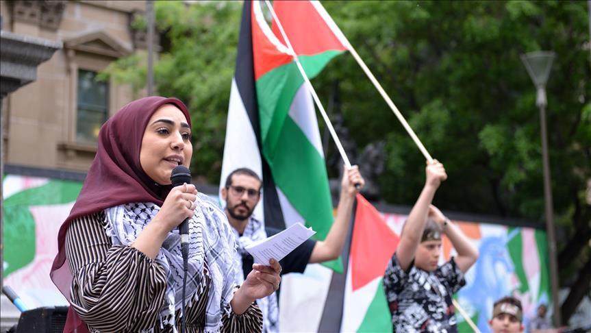 Başbakan Morrison’un açıklamalarına tepki göstermek, işgal altındaki topraklarda İsrail’e karşı mücadele veren Filistinlilere destek vermek amacıyla yapılan gösteride yapılan konuşmalarda, İsrail’in şiddeti kınandı.