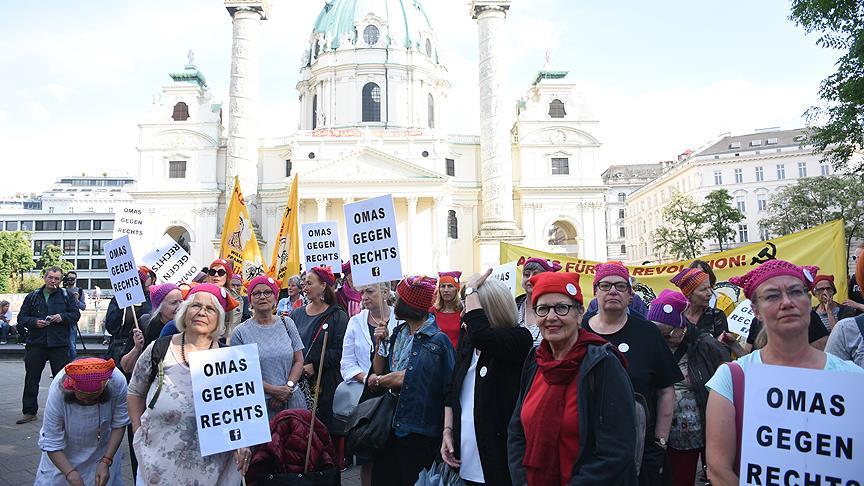 Başkentin önemli meydanlarından Karlspltaz'da toplanan göstericiler, "Yönetimde Nazilere hayır", "Hatırlamak mücadele etmektir. Faşizme ve savaşa hayır" yazılı pankartlar açtı.