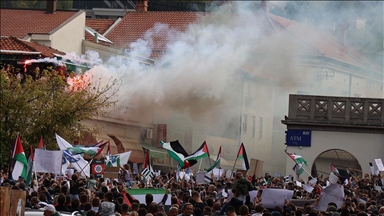ABD'nin Viyana Büyükelçiliği önünde toplanan göstericiler, "Filistin topraklarının işgaline hayır", "Avusturya, İsrail ve ABD emperyalizmini desteklememeli" ve "İsrail’e boykot, işgale hayır" yazılı pankartlar açtı.