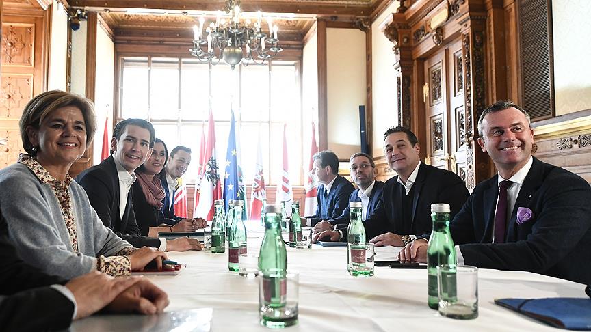 Avusturya'da 15 Ekim'de yapılan genel seçimlerden birinci parti olarak çıkan Avusturya Halk Partisi (ÖVP) ve aşırı sağcı Avusturya Özgürlük Partisi (FPÖ) yöneticileri, koalisyon hükümeti kurma görüşmeleri için bir araya geldi.