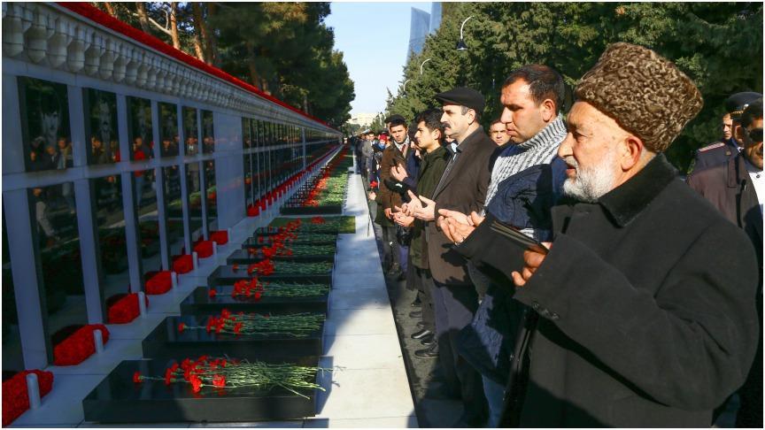 Azerbaycanlılar, 1990'da yaşanan katliamda hayatını kaybedenleri anmak için Bakü Şehitler Hiyabanı'na akın etti. Bakü ve diğer bölgelerden gelenler şehitlik önünde uzun kuyruklar oluşturdu. Mezarlara kırmızı karanfiller bırakan vatandaşlar, şehitler için dua etti.