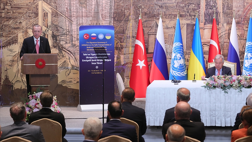Cumhurbaşkanı Recep Tayyip Erdoğan'ın himayelerinde, dün İstanbul'da Türkiye, Rusya, Ukrayna ve BM arasında "Tahıl ve Yiyecek Maddelerinin Ukrayna Limanlarından Emniyetli Sevki Girişimi Belgesi" imzalanmıştı.