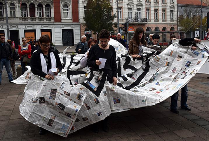 Sırbistan'ın başkenti Belgrad'da da "sansür" temalı eylem düzenlendi. Siyah Giyen Kadınlar Derneği tarafından İkinci Dünya Savaşı'nda asılarak öldürülenlerin anısına dikilen anıtın yanı başında düzenlenen eylemde, üzerleri gazete kağıtlarıyla örtülü grup totaliter rejimlerin uyguladığı sansüre dikkati çekti.