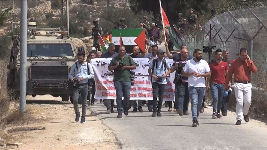 Filistinli aktivist Munzir Amira, AA muhabirine yaptığı açıklamada, yerleşim birimlerinin genişletilmesi amacıyla arazilere el konulmasına tepki gösterdiklerini söyledi.