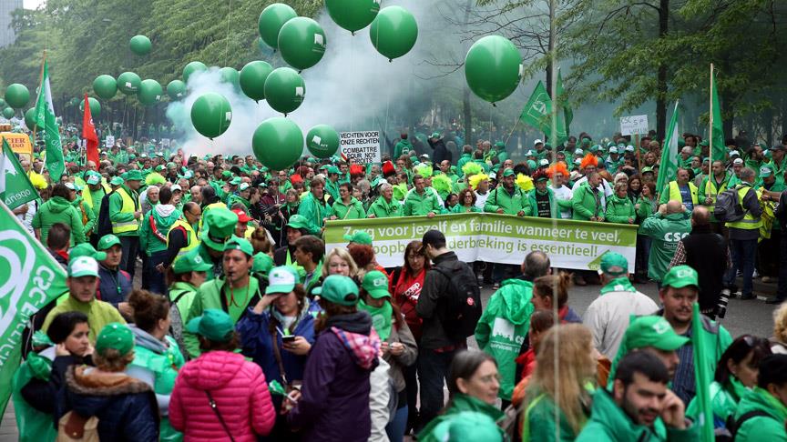 Belçika'da grev yapan kamu çalışanları, hükümet karşıtı gösteri düzenledi.