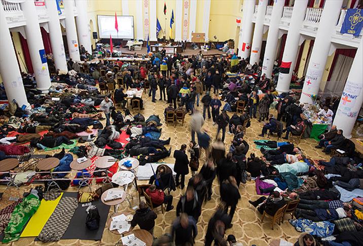 Ukrayna Cumhurbaşkanı Viktor Yanukoviç'in Avrupa Birliği (AB) ile ortaklık anlaşması sürecinin askıya alındığını duyurmasının ardından başkent Kiev'de sokağa dökülen eylemciler, olaylar başladığında işgal ettikleri Kiev belediye binasından, işgalin üzerinden yaklaşık iki ay geçmesine rağmen çıkmadı.