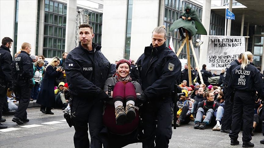 Almanya'nın başkenti Berlin'de "Yokoluş İsyanı (Extinction Rebellion)" adlı çevreci grubun değişik noktalarda başlattığı "işgal eylemi" beşinci gününde sürüyor.