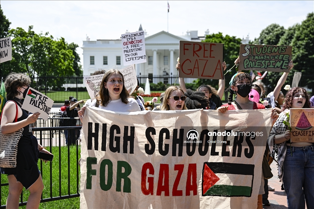 ABD'nin başkenti Washington'da bulunan çok sayıda üniversite öğrencisi genç, Gazze'de ateşkes çağrısı için Beyaz Saray'ın önünde bulunan Lafayette Parkı'nda bir araya geldi.