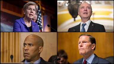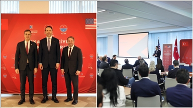 "Filistin'e özgürlük", "Gazze'ye özgürlük" ve "Filistin çok yaşa" sloganları atan grup, açtıkları pankartlarla da ABD yönetimine seslendi.