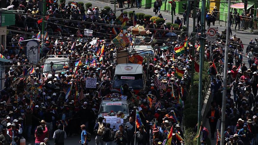 Muhaliflerin ve ordunun baskısıyla istifa eden Devlet Başkanı Evo Morales'in yerine geçici devlet başkanlığına getirilen Jeanine Anez karşıtı göstericilerin barikat kurduğu El Alto kentinde güvenlik güçlerinin müdahalesi ile hayatını kaybeden 9 protestocu için başkent La Paz’da merasim ve yürüyüş düzenlendi.