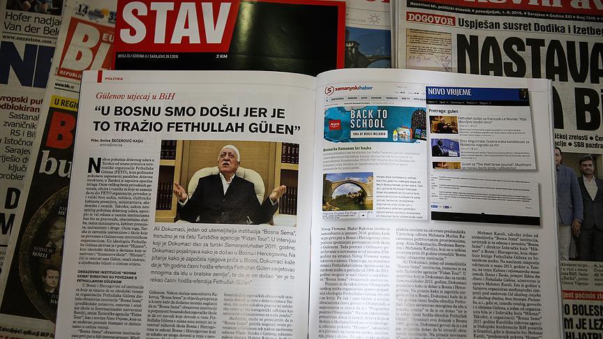 Novo Vrijeme haber sitesinde de 2015 yılı sonuna kadar ayda birkaç kez FETÖ elebaşı Gülen'in yazılarının, onunla ilgili olumlu haber ya da röportajların yayınladığına ve bunların söz konusu medya organının arşivinde bulunabileceğine işaret edilen yazıda, Gülen'in resmi internet sitesinde de 2008-2011 yıllarında Bosna Sema Eğitim Kurumlarının başarıları hakkında haberlerin olduğuna dikkat çekildi.
