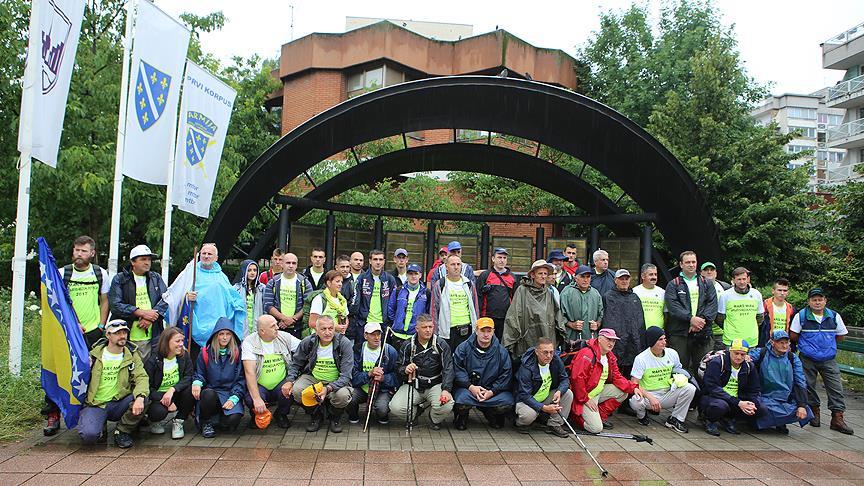 Başkentteki Bosna Hersek Ordusu Şehit ve Gazileri Anıtı önünde toplanan 50 kişilik grup, "Barış Yürüyüşü"nün ilk durağı Nezuk kasabasına doğru yürüyüşlerine başladı.