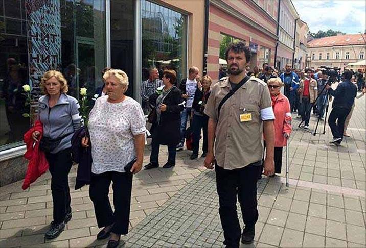 Yürüyüşün ardından vatandaşlar, Patria alışveriş merkezi önünde, bu şehirde savaş zamanında hayatını kaybeden 102 çocuk için 102 gül bıraktı ve dua etti. Vatandaşlar burada, yerel yetkililere ulaştırmak üzere, ölen çocuklar anısına anıt yapılması için imza topladı.