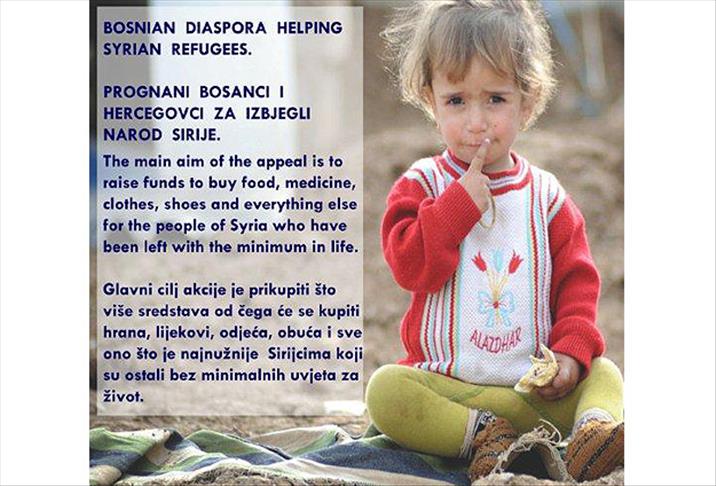 Bosnia Appeal İnsani Yardım Kuruluşu'ndan yapılan yazılı açıklamada, ''Yurtlarından Edilmiş Bosna Hersekliler, Suriyeli Mülteciler İçin'' adı verilen yardım kampanyası kapsamında, gıda, ilaç, giyecek başta olmak üzere Suriye halkı için gerekli tüm ihtiyaçların karşılanabilmesi için para toplanacağı belirtildi. Açıklamada, bugün Suriye halkının yaşadıklarını, geçmişte aynı kaderi yaşanan ve bugün 100'den fazla ülkeye dağılmış olan Bosna Herseklilerin çok iyi anlayabildiği ifade edildi.