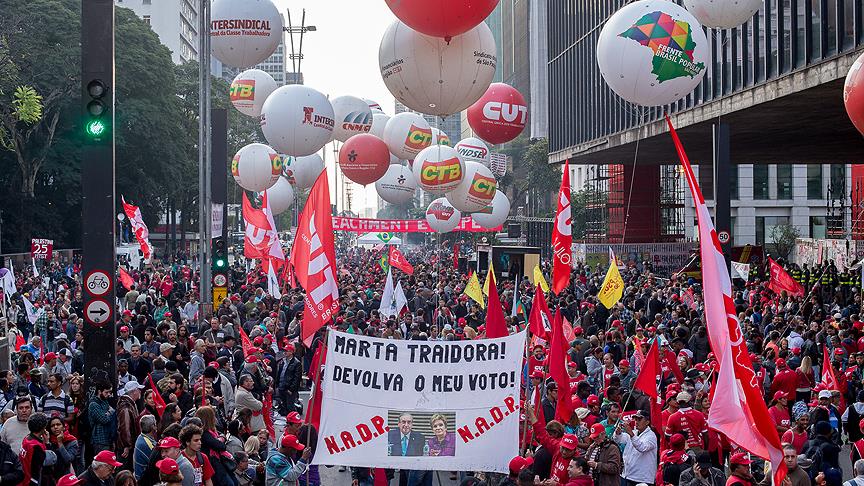 Eski Devlet Başkanı Luiz Inacio Lula Da Silva ve geçici olarak görevden alınan Devlet Başkanı Dilma Rousseff'in destekçileri, Lula'nın önderliğinde ülkenin en büyük kentlerinden Sao Paulo'da sokaklara döküldü.
