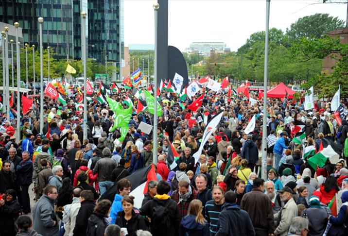 Belçika’nın başkenti Brüksel’de yaklaşık 4 bin kişi, İsrail'in Gazze'ye düzenlediği saldırılar nedeniyle protesto yürüyüşü düzenledi.