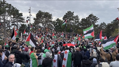 Protesto yürüyüşüne katılanlar, Belçika hükümeti ve Avrupa Birliği’nden (AB) İsrail’e yaptırım uygulanmasını da talep etti.