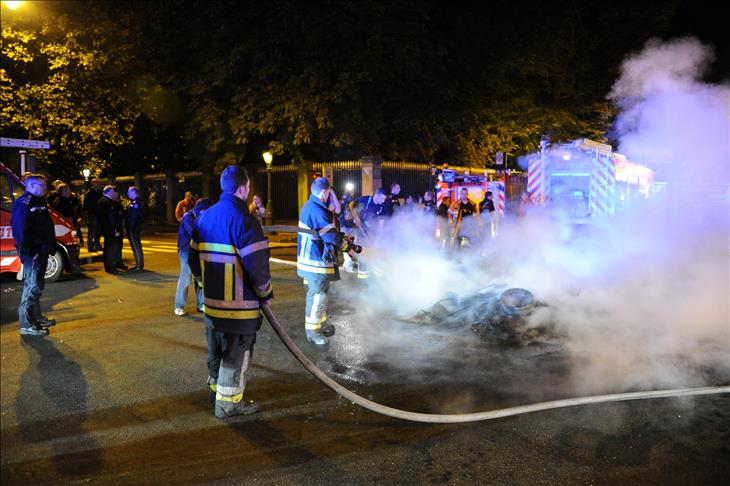 İtfaiyeciler, önce Başbakan Elio Di Rupo'nun çalışma ofisinin bulunduğu caddeye getirdikleri tahtaları ateşe verdi, daha sonra güvenlik önlemi alan polislere köpük sıktı.