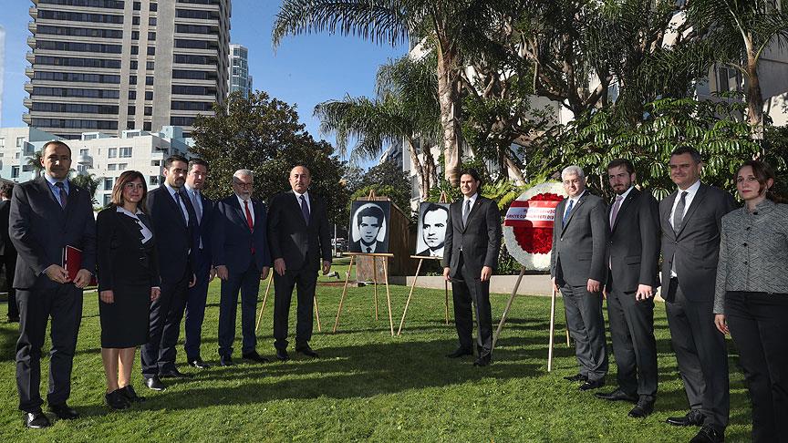 Dışişleri Bakanı Mevlüt Çavuşoğlu, ABD temasları kapsamında Los Angeles'ta temaslarda bulundu. Çavuşoğlu, Türkiye'nin eski Los Angeles Başkonsolosu Kemal Arıkan'ın şehit edildiği yerde, Kaliforniya'da şehit edilen üç Türk diplomat anısına çelenk bıraktı.