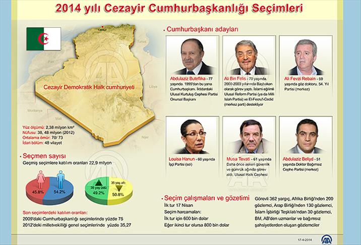 Cumhurbaşkanı Abdulaziz Buteflika'nın yanı sıra 5 adayın yarıştığı seçimlerde, 23 milyona yakın seçmenin oy kullanması bekleniyor.