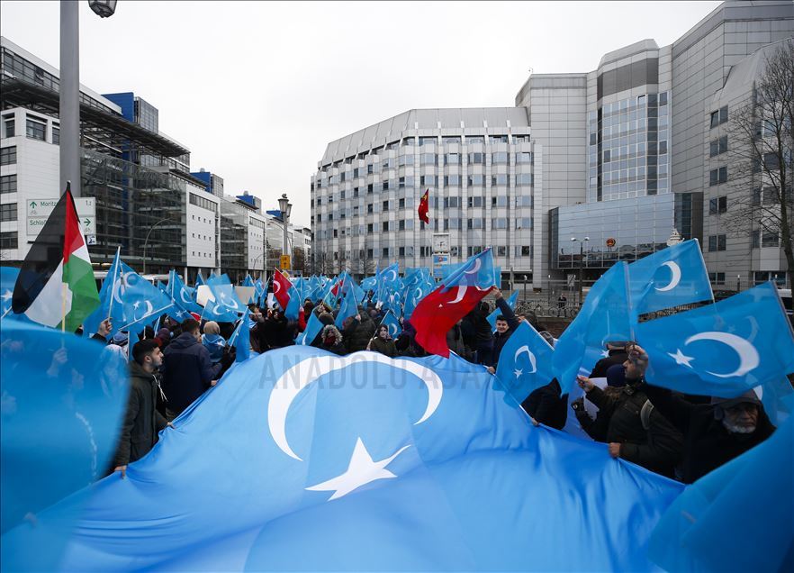 Almanya'nın başkenti Berlin'de Çin’in Sincan Uygur Özerk Bölgesi'ndeki Uygurlara yönelik uyguladığı politikalar protesto edildi.