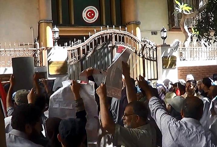 Türkiye'nin İskenderiye Başkonsolosluğu önünde toplanan göstericiler, ''Ordunun yönetime el koymasının ardından Mısır halkının yanında durduğu için Türkiye hükümetine ve halkına teşekkür'' etti.