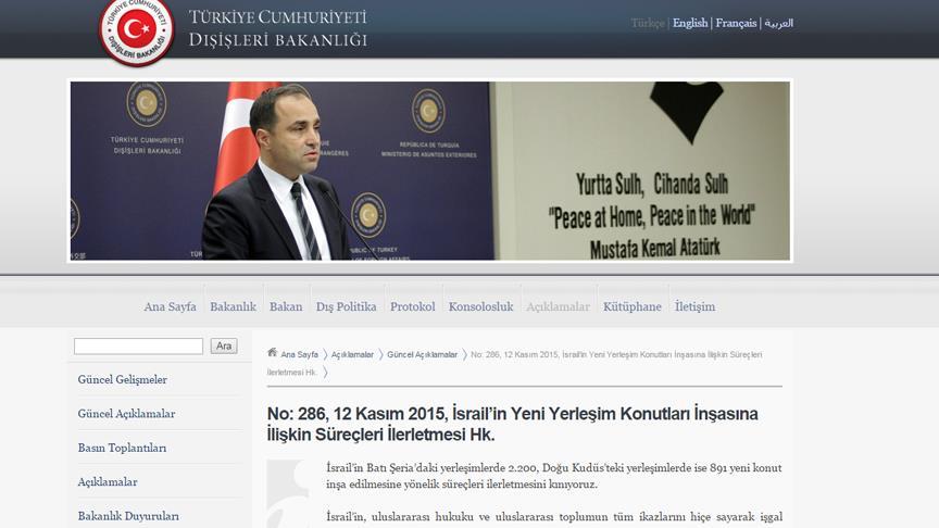 Dışişleri Bakanlığından yapılan yazılı açıklamada, İsrail'in Batı Şeria’daki yerleşimlerde 2 bin 200, Doğu Kudüs’teki yerleşimlerde ise 891 yeni konut inşa edilmesine yönelik süreçleri ilerletmesinin kınandığı belirtildi.