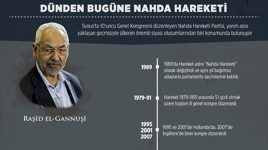 Tunus'ta 10'uncu Genel Kongresini düzenleyen Nahda Hareketi Partisi, yarım asra yaklaşan geçmişiyle ülkenin önemli siyasi oluşumlarından biri konumunda bulunuyor.