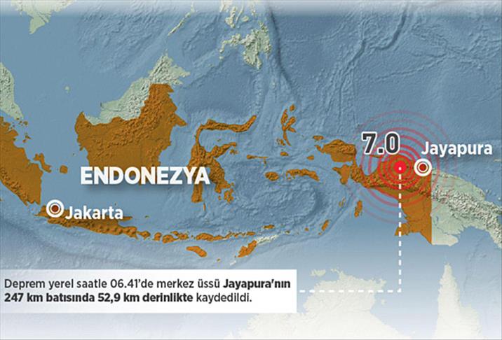 Endonezya'nın doğusundaki Papua eyaletinde 7 büyüklüğünde deprem meydana geldi.