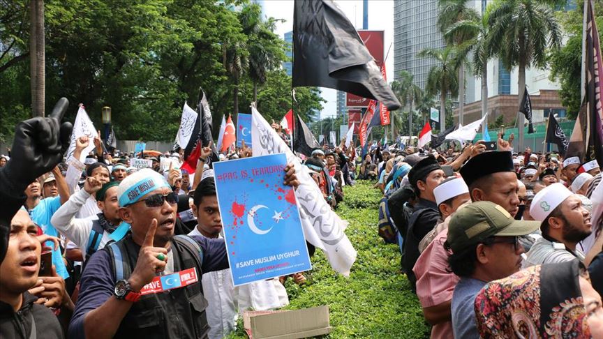 Başkent Cakarta'da, İslam Savunucuları Cephesi (FPI) adlı örgütün, cuma namazı sonrası Çin’in Cakarta Büyükelçiliği önünde düzenlediği gösteriye yaklaşık bin kişi katıldı."Çin'i boykot et", "Müslüman Uygurlara yönelik soykırımı durdur", "Uygurlar ile beraberiz" ve "Uygurları kurtarın" pankartları taşıyan eylemciler, Çin hükümetinin Uygurlara yaptığı zulme tepki göstererek, ''Komünist Çin'' ve ''Terörist Çin'' şeklinde slogan attı. ( Mahmut Atanur - Anadolu Ajansı )