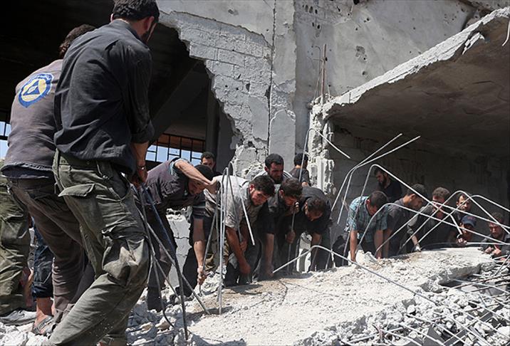 Söz konusu belde halkının enkaz altında kalanlara ulaşmak için sivil savunma ekiplerine yardım ettiğini kaydeden yetkililer, rejimin ilçeye saldırması sonucunda üç binanın tamamen çöktüğünü belirtti.