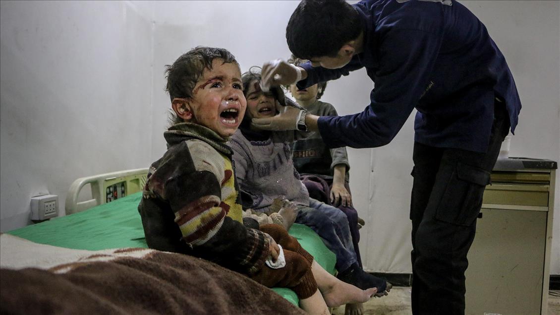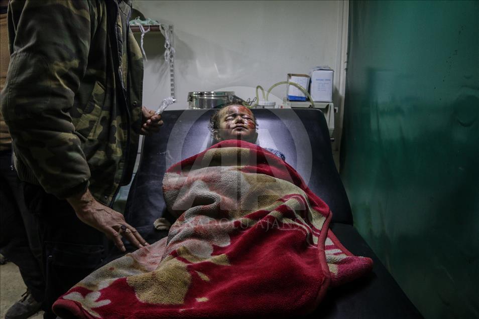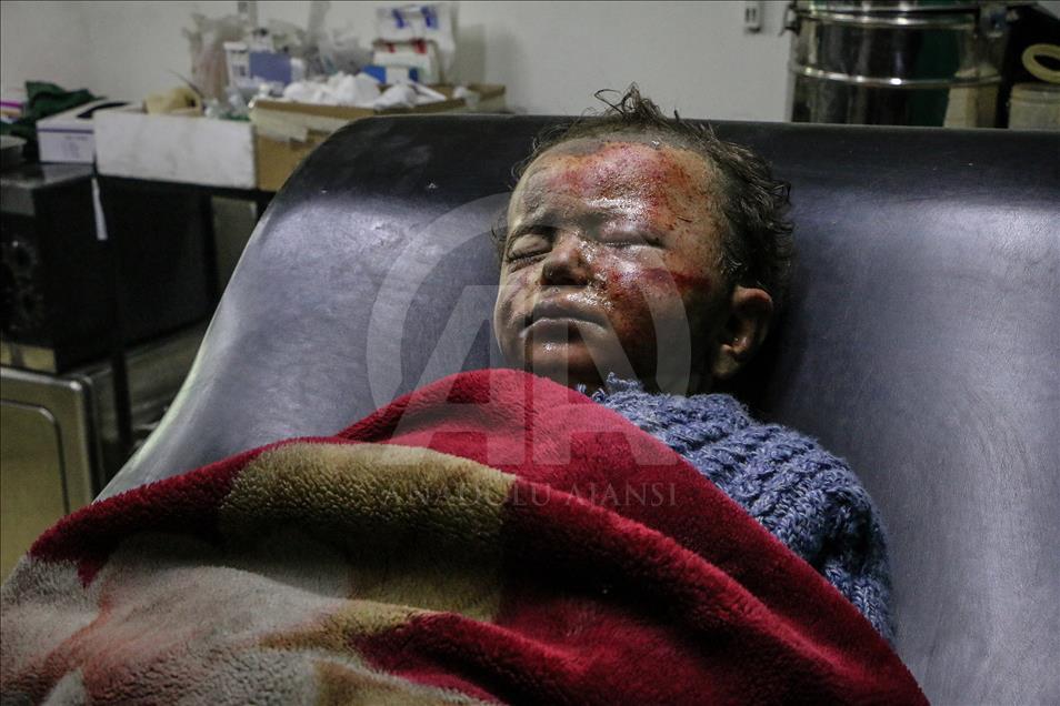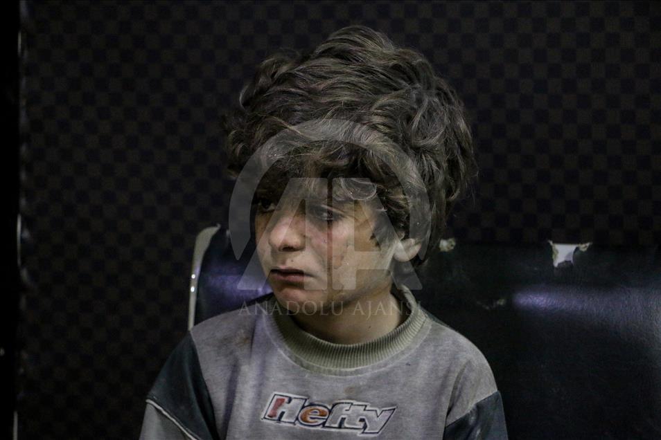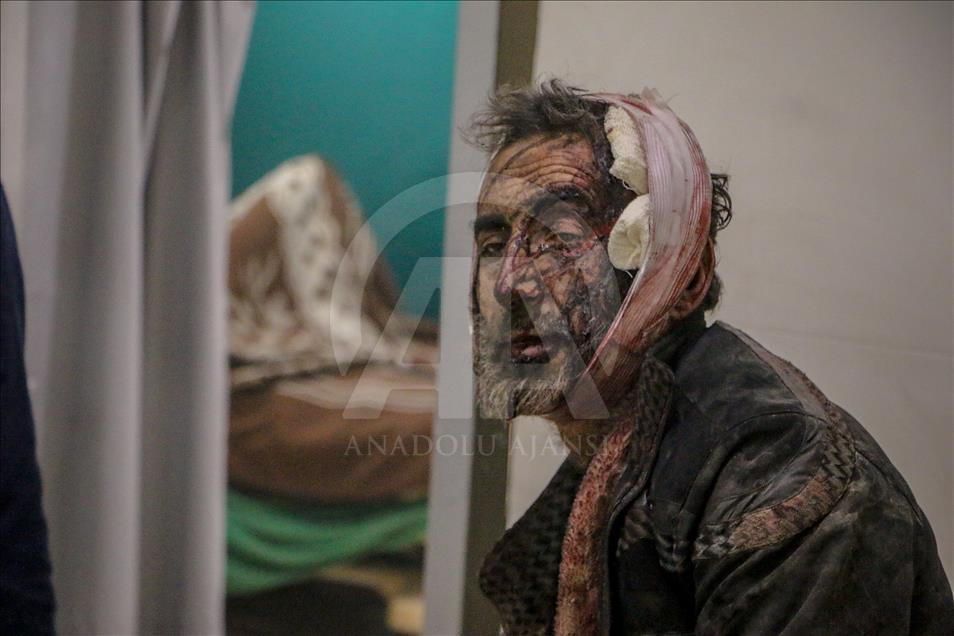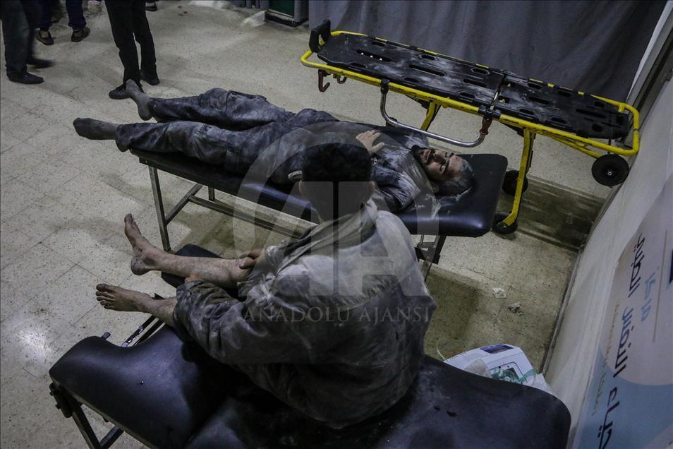 Beşşar Esed rejimi ve destekçilerinin, Birleşmiş Milletler Güvenlik Konseyinin (BMGK) kararı ve Rusya'nın ilan ettiği 5 saatlik ateşkese rağmen Doğu Guta'nın farklı yerleşimlerine düzenlediği saldırılarda 19 sivil yaşamını yitirdi. Doğu Guta'nın Zemelke bölgesine düzenlenen saldırılar sonucu yaralananlar, bölgedeki sahra hastanesine kaldırılarak tedavi altına alındı. ( Mohammed Al Shami - Anadolu Ajansı )