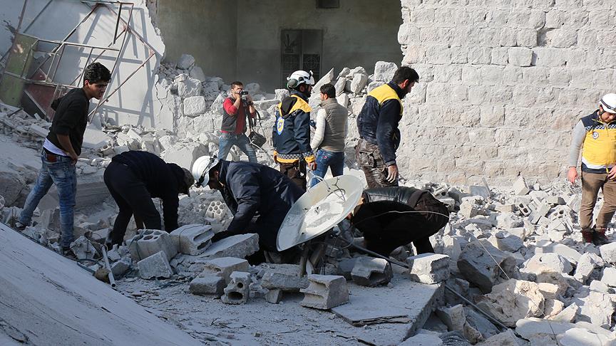Sivil Savunma (Beyaz Baretliler) ekipleri, hedef alınan yerleşimlerde arama kurtarma ve enkaz kaldırma çalışmalarını sürdürüyor.