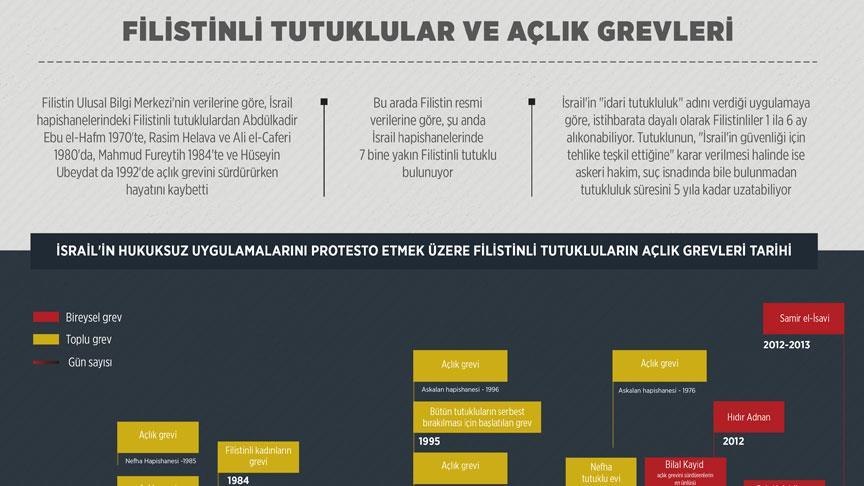 Filistin Ulusal Bilgi Merkezi'nin verilerine göre, İsrail hapishanelerindeki Filistinli tutuklulardan Abdülkadir Ebu el-Hafm 1970'te, Rasim Helava ve Ali el-Caferi 1980'da, Mahmud Fureytih 1984'te, Hüseyin Ubeydat da 1992'de açlık grevini sürdürürken hayatını kaybetti.