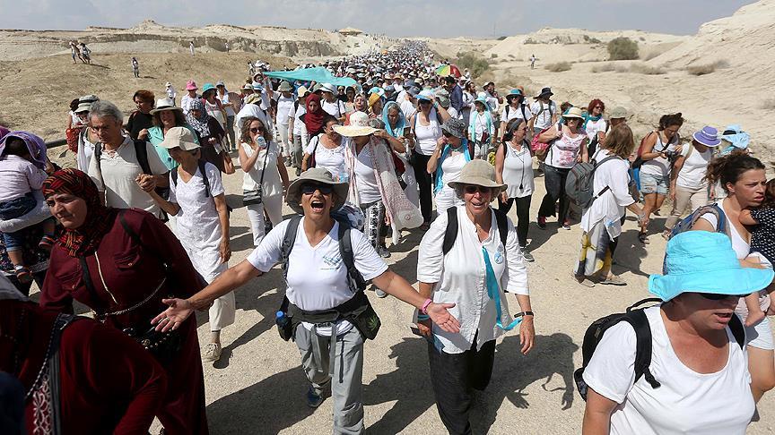 İsrailli "Kadınlar Barışı Tesis Ediyor" hareketinin çağrısı üzerine Eriha'nın güneyindeki Ölü Deniz yakınlarında başlayan yürüyüşe katılan Uluslararası Barış Koalisyonu üyesi Filistinli kadın aktivist Hüda Ebu Arkub, AA muhabirine yaptığı açıklamada, yürüyüşe, Filistinli ve İsrailli yaklaşık 7 bin kadının katıldığını belirtti.