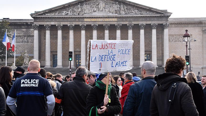 Başkent Paris’teki gösteride 900 polis, meclis binası önünde toplandı. Sivil giysileri ile protestoya katılan polisler, çalışma koşularının düzeltilmesi için sloganlar attı.