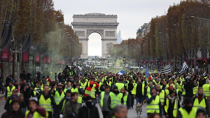 Başkent Paris'in Champs-Elysees Caddesi çevresinde 1 Aralık'ta düzenlenen, binlerce kişinin katıldığı gösteride polisin eylemcilere sert müdahalesi, sokaklarda araçların ve çöp bidonlarının yakılması, iş yerlerinin yağmalanması, sık aralıklarla ses bombalarının patlatılması ve alevlerin yükselmesi, kenti "kaosa" sürüklemişti.