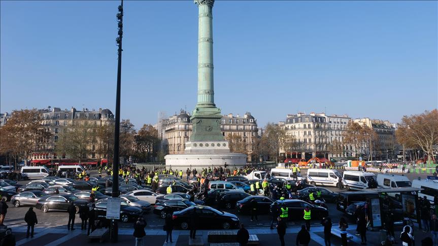 Birçok sendikanın çağrısıyla ülke genelinde düzenlenen gösterilerde, hükümetin akaryakıta ek vergi koymasına tepki gösterildi. "Sarı yelekliler" adı altında örgütlenen eylemciler, Paris'in farklı noktalarında gösteri düzenlendi.