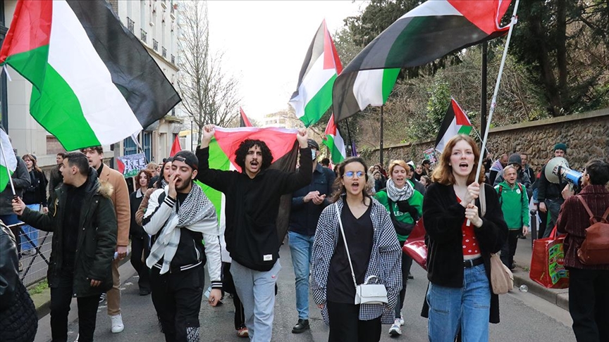 Başkent Paris'in kuzeyindeki Garges-les-Gonesse şehrinde ise Filistin destekçileri uluslararası fast food zinciri McDonald's şubesinin önünde toplandı.