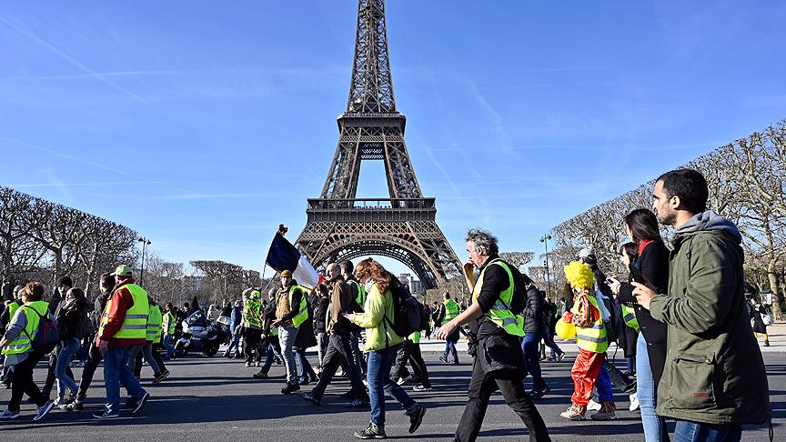 Paris'te Champs-Elysee Caddesi'nde toplanan göstericiler, başkentin farklıi sokaklarında yürüdükten sonra Eyfel Kulesi'nin yanındaki Champs-de-Mars Meydanı'na geldi. Eylemciler bir süre gösteriye devam ettikten sonra dağıldı.