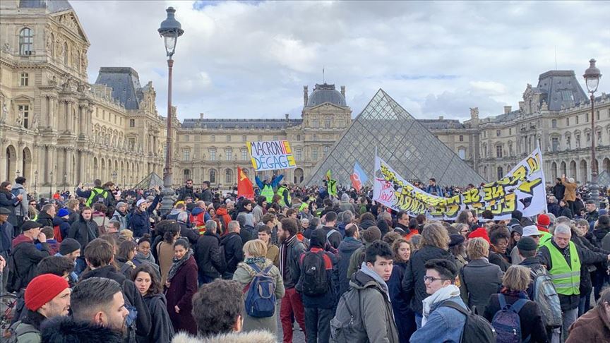 Sendikaların çağrısıyla Paris'teki Opera Meydanı'nda toplanan eylemciler, tarihi Louvre Müzesi'nden geçerek Ulusal Meclis'e yürüdü.